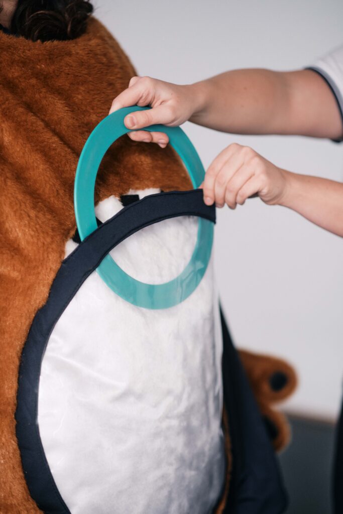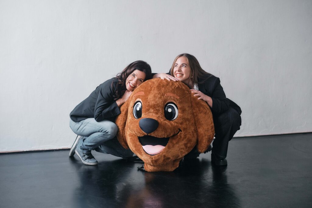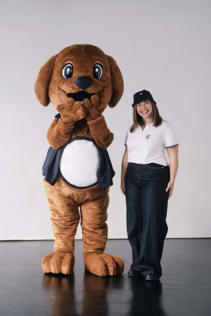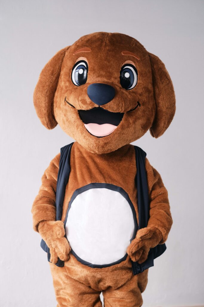 Ein Maskottchen in Form eines braunen Labradors –